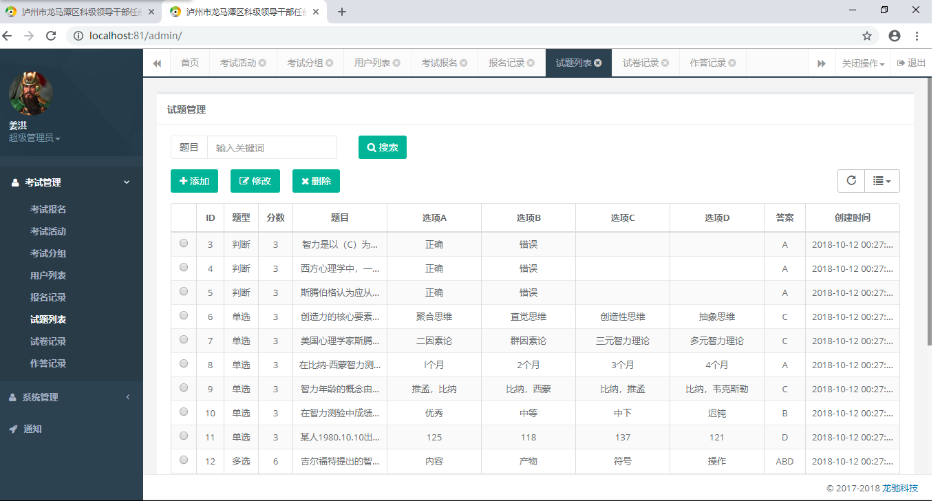 圖3 - 后臺:題目數(shù)據(jù)管理