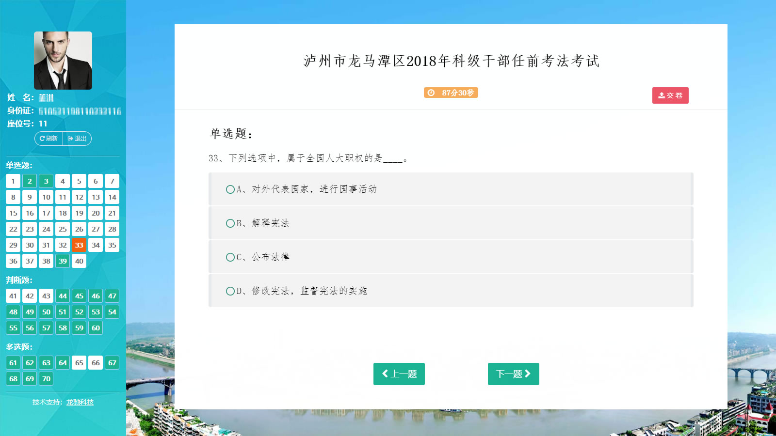 5、考試進行中,考試電腦出現(xiàn)故障可更換電腦登錄繼續(xù)答題,已領(lǐng)取的試卷不會變更,答題記錄與進度亦不受任何影響。